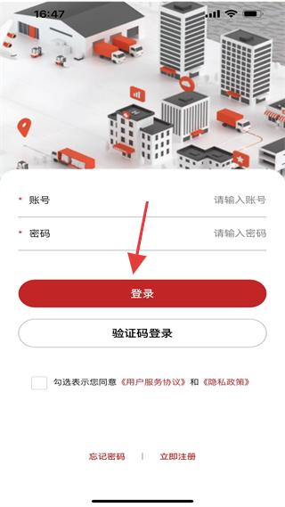 1、登錄界面,支持賬號密碼、驗證碼登錄,需勾選協議,另設密碼找回、注冊入口,是進入應用的基礎操作頁面。
