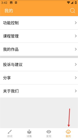 4、我的頁,包含功能控制、課程管理等個人中心功能,支持作品管理與反饋建議,助力用戶自主管理學習內容。
