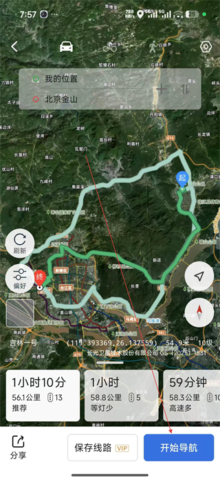 4、確認路線信息無誤后點擊開始導航按鈕,即可進入實時導航界面,按照指引前往北京金山目的地。