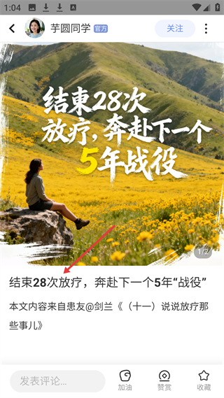 4、平臺有患友抗癌故事,如結束28次放療奔赴5年戰役,傳遞抗癌正能量,給患者希望與力量,激勵治療信心。