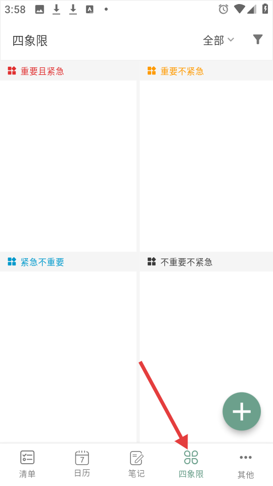 4、四象限頁面劃分任務類別,通過底部四象限按鈕訪問,能將任務按重要、緊急程度分類助力高效任務管理。