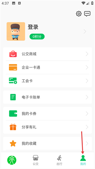4、進入個人中心,可完成登錄操作,管理公交商城電子卡賬單等,處理與公交相關的個人權益信息。