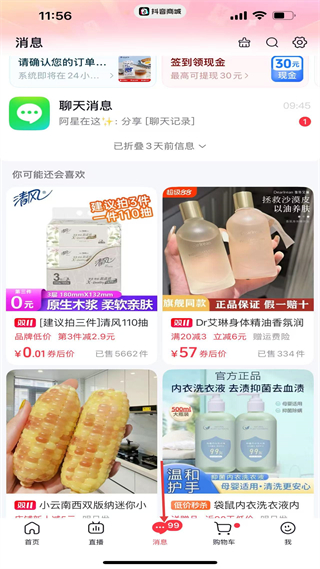 3、消息板塊有訂單確認、聊天消息及商品推薦,助力用戶管理購物信息、社交互動,還能發現心儀商品。