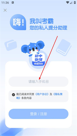 3、輸入手機號,勾選已閱讀并同意相關協議,點擊登錄注冊按鈕,完成賬號登錄,以便使用更多功能。