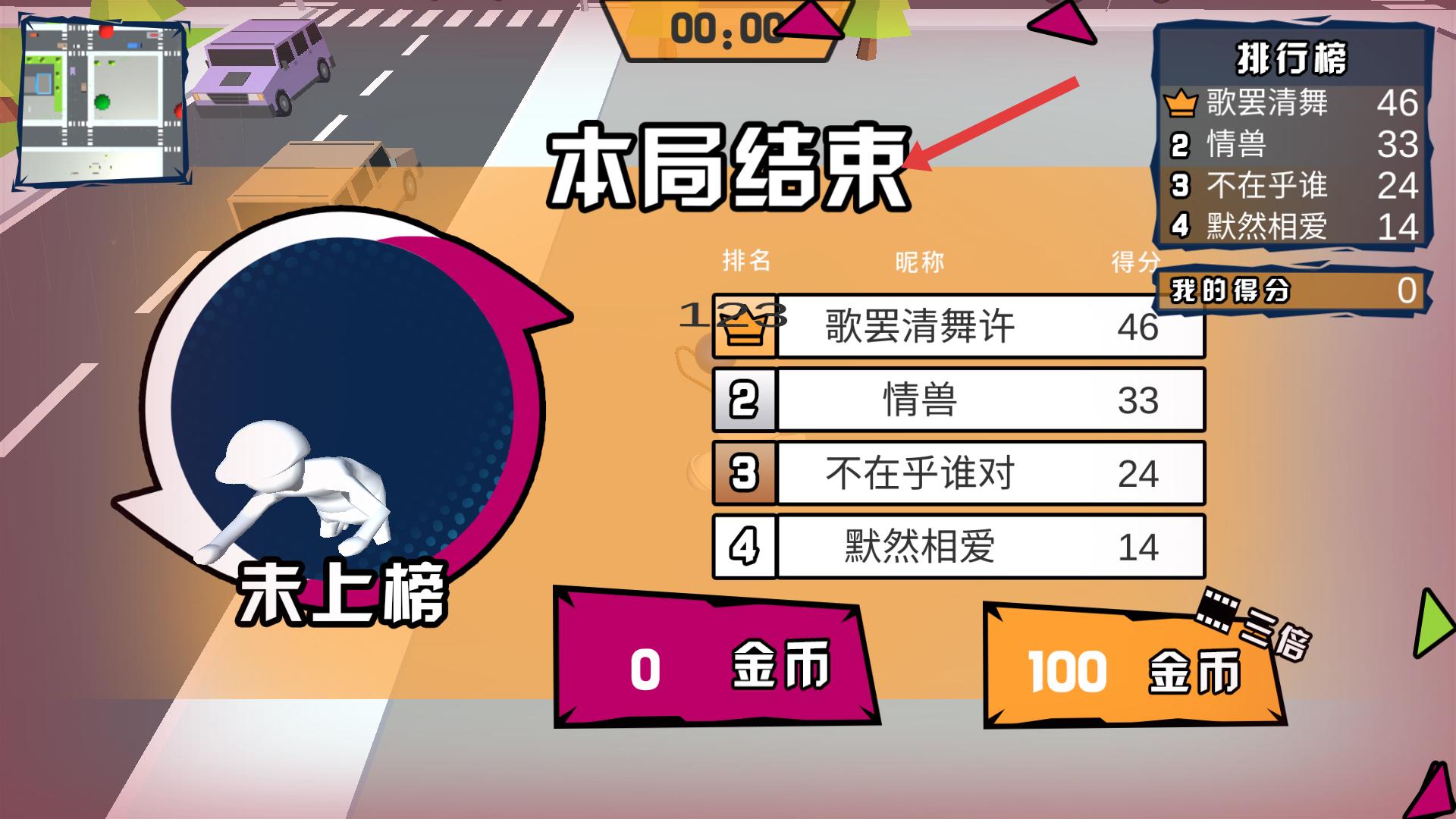 4、一局游戲結束后,界面顯示排名與得分,若想繼續游戲,可準備開啟下一局,爭取獲得更高分數和更好排名。