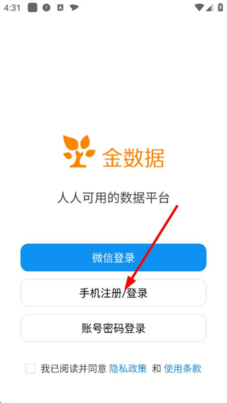 2、進入登錄選擇界面,看到微信登錄、手機注冊、登錄等選項,點擊手機注冊、登錄,進入手機號登錄的操作頁面。