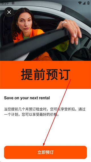 2、在提前預訂彈窗中了解提前數月預訂享折扣的規則,點擊立即預訂按鈕,跳轉至車輛類型選擇頁面,可切換乘用車或貨車選項。