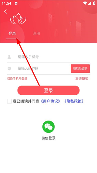 3、登錄頁面,可輸入手機號和驗證碼登錄,也可選擇微信登錄,登錄前需閱讀并同意相關協議。
