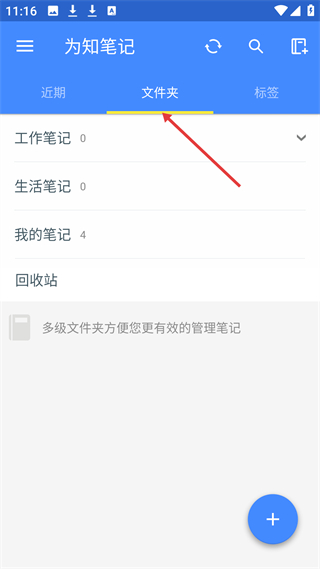 3、文件夾頁面有工作筆記、生活筆記等分類,還有我的筆記回收站,多級文件夾助力高效管理筆記。