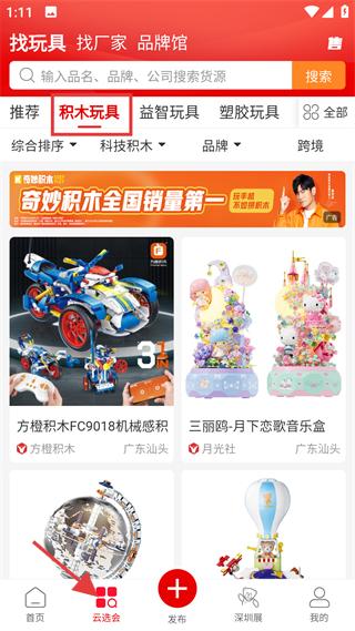 3、進入云選會的積木玩具板塊,可瀏覽各類積木產品,支持按品牌、類型篩選,便于采購商挑選合適的玩具貨源。