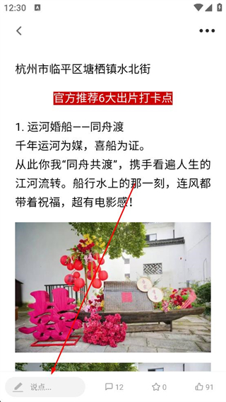 4、點擊頁面下方的分享按鈕,打開分享選項界面,選擇合適的分享渠道,準備將內容分享出去。