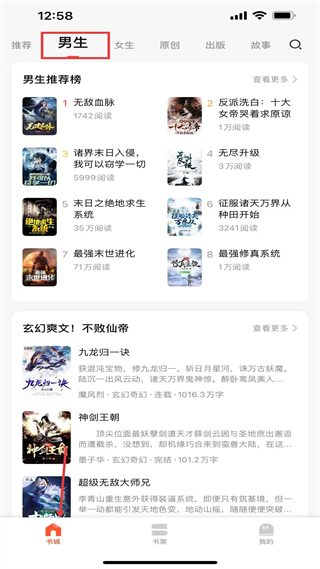 1、書城男生板塊有推薦榜,如無敵血脈、反派洗白十大女帝哭著求原諒,涵蓋玄幻、末世類型,滿足男性讀者閱讀喜好。
