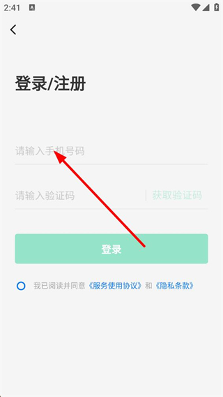 4、登錄、注冊界面,輸入手機號碼,獲取并填入驗證碼,勾選同意協議后點擊登錄,即可完成賬號登錄,同步學習記錄。
