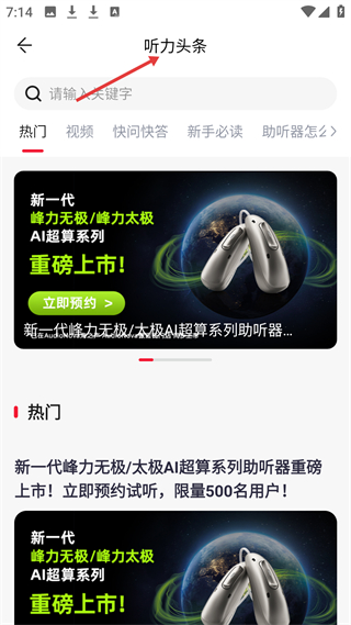 4、聽力頭條有熱門等分類,提供聽力健康資訊和助聽器產品信息,助力用戶了解聽力知識和產品動態。