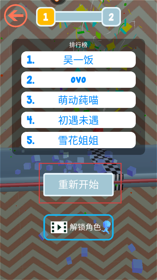3、若想重新挑戰,點擊重新開始按鈕,就能再次進入游戲,繼續在賽道上競技,爭取更好的成績。
