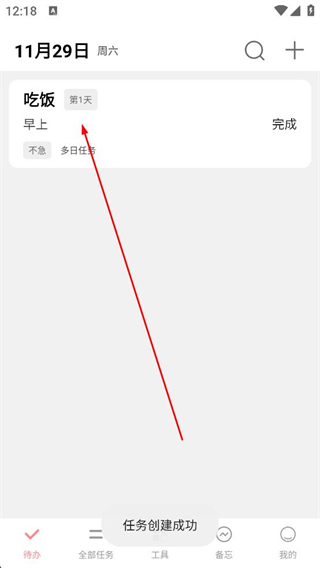 4、完成多日任務的創建,返回待辦頁面即可看到新建的任務,這樣任務就建立成功了。