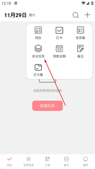 2、在任務類型菜單中選擇多日任務選項,進入多日任務的編輯頁面,準備填寫任務相關信息。