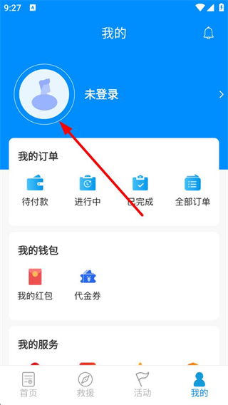 2、點擊我的板塊,可查看個人訂單狀態,管理我的錢包里的紅包和代金券,還能使用各類我的服務,需先進行登錄操作才能使用更多功能。