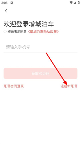 3、進入登錄界面,需勾選同意隱私政策,輸入手機號后可獲取驗證碼登錄,也能選擇注冊新賬號來完成賬號注冊操作。