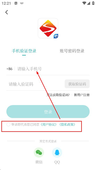 1、打開軟件進入登錄頁,選擇手機驗證登錄,在對應輸入框填寫手機號,勾選登錄代表已同意相關協議,點擊獲取驗證碼,準備完成登錄。