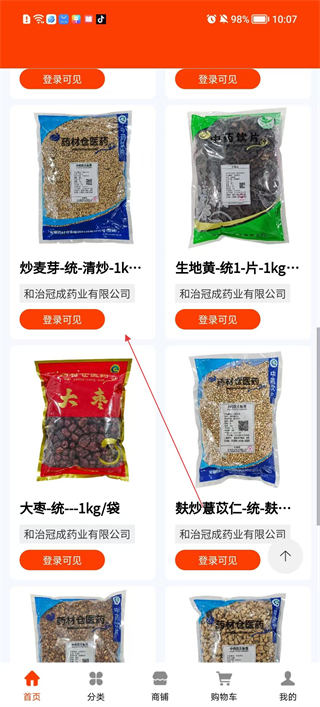 2、在中藥飲片商品列表頁面,瀏覽各類藥材商品,如炒麥芽、生地黃等,點擊商品查看詳情,了解商品信息。