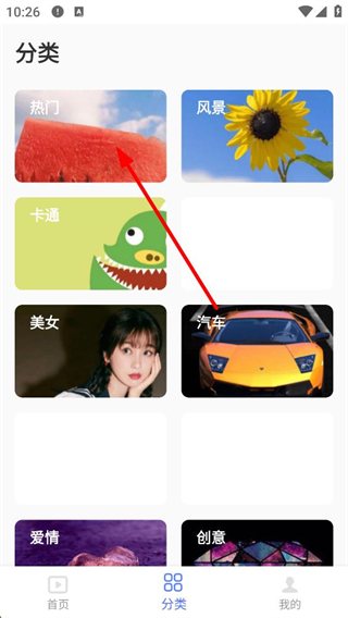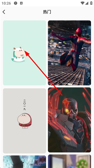 2、進入分類界面后,有熱門、風景、卡通等多個壁紙分類選項,點擊對應分類即可進入該分類的壁紙列表頁面。