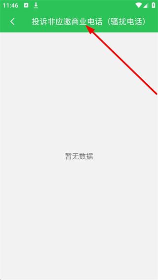 2、投訴非應邀商業電話界面,可查看相關投訴數據,當前顯示暫無數據,方便用戶了解自身投訴情況。