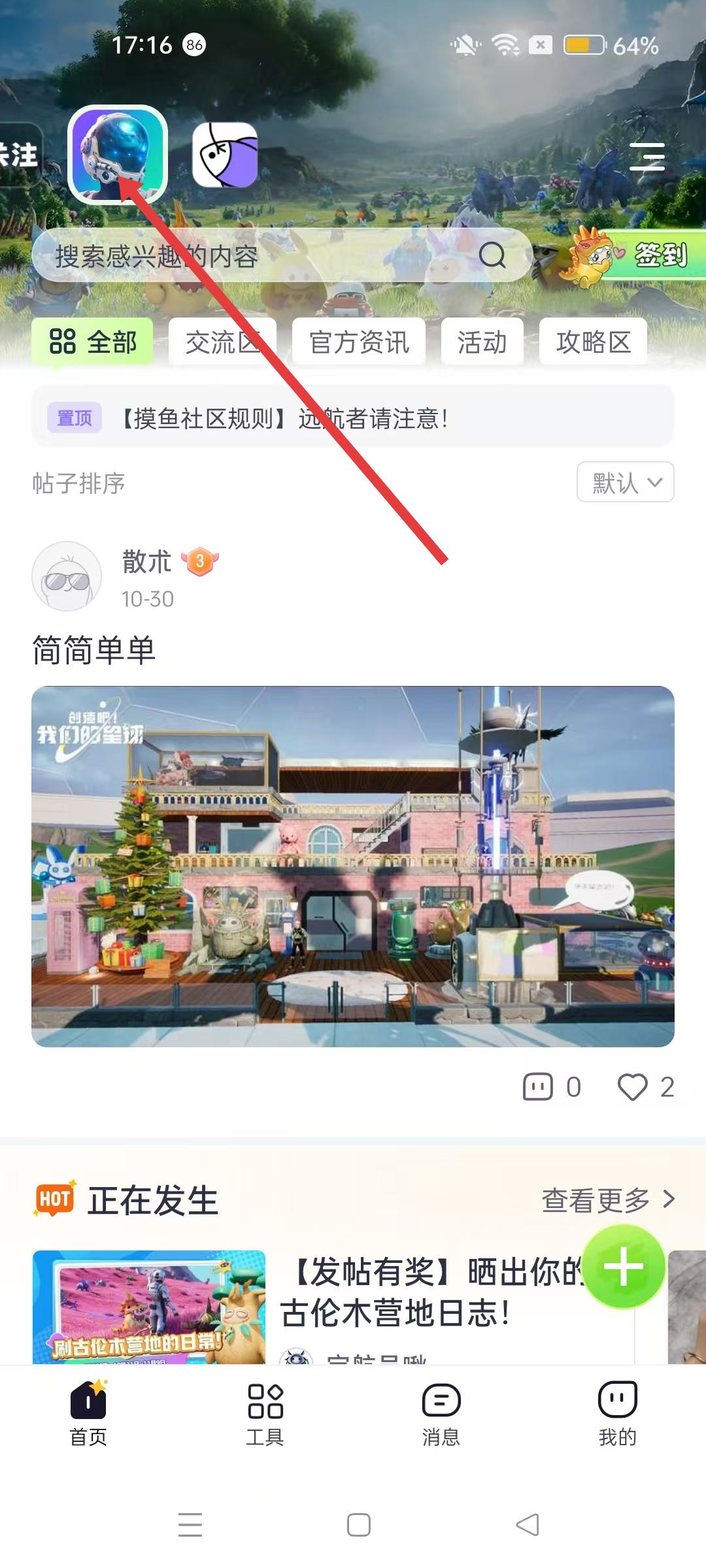 1、進入創造吧我們的星球社區首頁,可看到各類帖子及活動,開啟社區探索之旅。