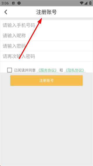 4、點擊立即注冊進入注冊賬號頁面,需依次填寫手機號碼昵稱密碼并再次輸入密碼,勾選協議后可點擊注冊賬號完成注冊。
