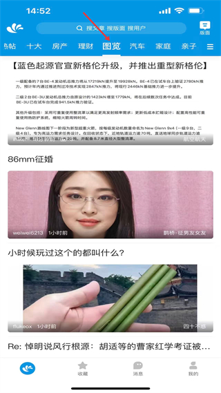 4、切換至圖覽版塊,瀏覽多元內容,含航天資訊、生活分享等,部分內容搭配圖片,豐富信息呈現形式。