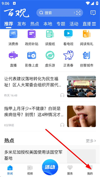1、打開百觀新聞app選擇新聞板塊,這里設置消費券入口,是為了讓用戶在瀏覽新聞的同時,能夠快速發現并參與到消費券領取等活動中。
