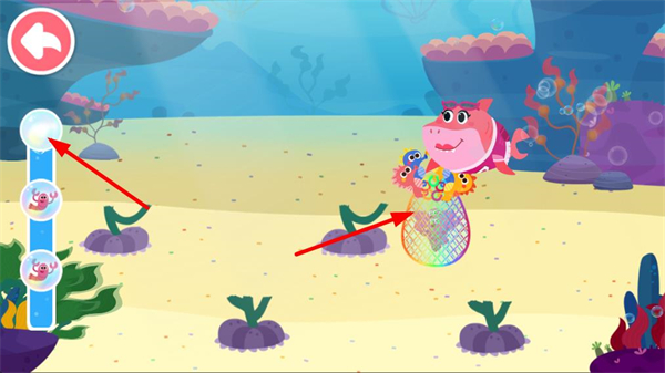 1、選擇場景元素,觸發互動流程,開啟海底主題的冒險環節,體驗趣味場景互動的樂趣,為后續的冒險操作做鋪墊。