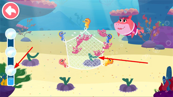 3、使用工具捕捉海底生物,完成收集目標,體驗海底收集的玩法,增強對場景資源獲取的理解,繼續推進冒險進度。