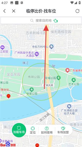 4、在找車位頁面搜索目的地,查看附近車位信息,完成車位預訂,后續可前往預訂車位停車。