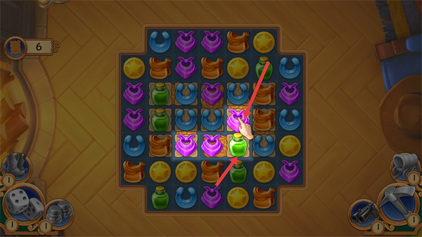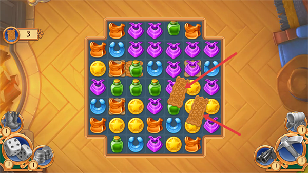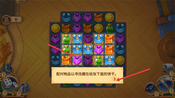 2、點擊并移動相同的物品,讓它們配對消除,在消除的過程,逐步尋找隱藏的餅干。