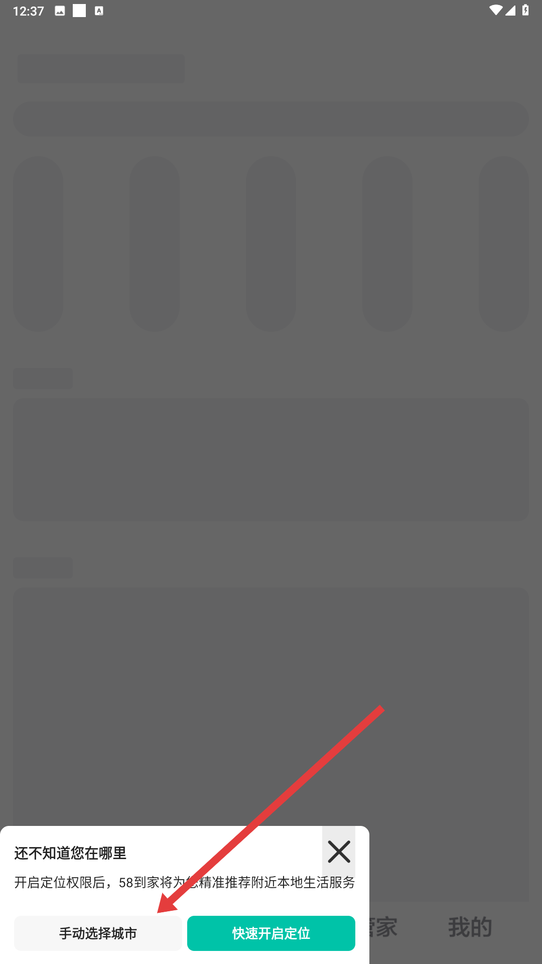 3、登錄后,若彈出定位權限提示,可選擇手動選擇城市或快速開啟定位,以便獲取附近本地生活服務推薦。