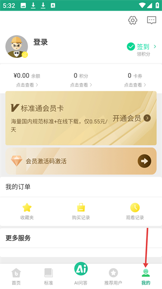4、我的界面,用戶可登錄查看賬戶信息,開通會員卡,管理訂單收藏等,是賬號管理和服務中心。