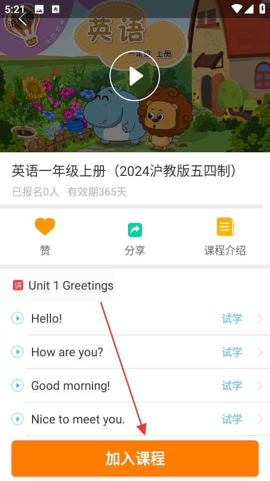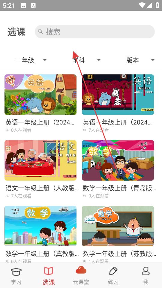 2、切換到選課頁面,利用搜索欄或年級、學科、版本篩選條件,查找適配課程,瀏覽課程封面與簡介,鎖定目標課程。