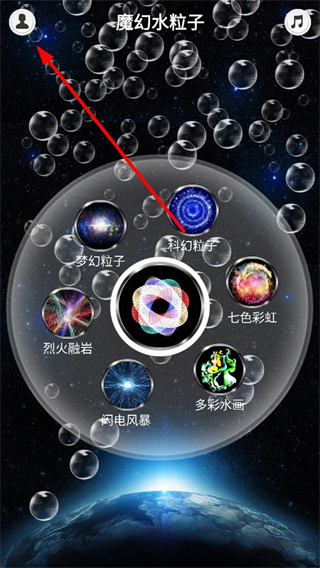 1、進入魔幻水粒子主界面,能看到夢幻粒子、科幻粒子、烈火熔巖等多種風格的粒子效果選項,點擊對應選項可切換不同動態粒子展示,打造符合自身喜好的個性化視覺體驗。