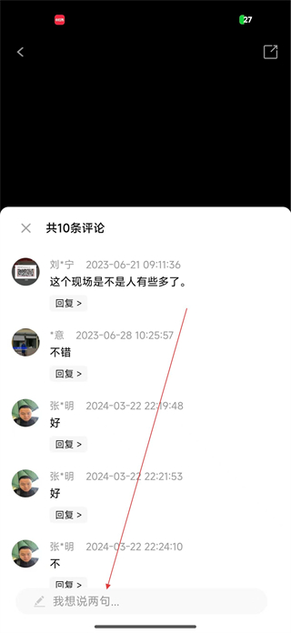 4、點擊評論按鈕進入評論區,查看其他用戶的評論內容,也可在輸入框填寫內容,發布自己的評論參與討論。
