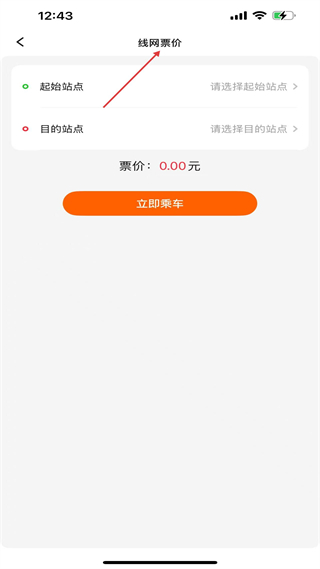 3、線網票價頁,可選起始和目的站點查票價,查后點立即乘車,方便了解出行費用。
