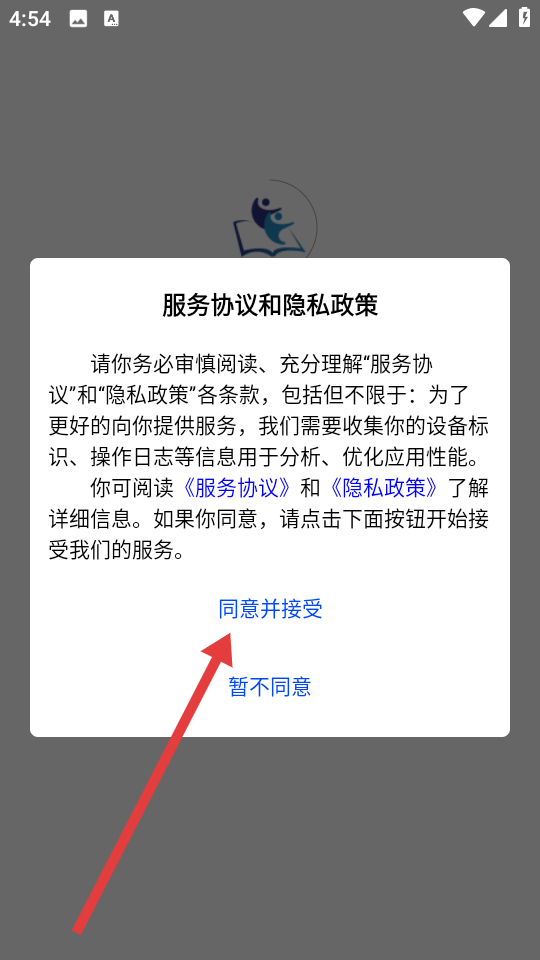 1、首次打開APP會彈出服務協議和隱私政策彈窗,請認真閱讀其中關于個人權益保護、信息收集使用等條款,若同意相關協議點擊同意按鈕。