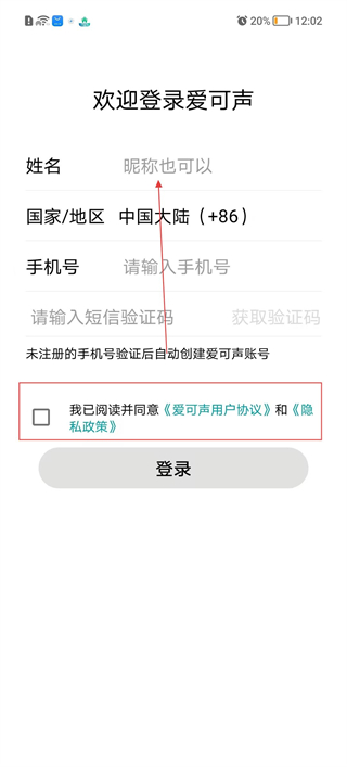 1、進入登錄頁面,填寫姓名與手機號,點擊獲取驗證碼并輸入,勾選同意相關協議的選項,點擊登錄按鈕完成賬號登錄。