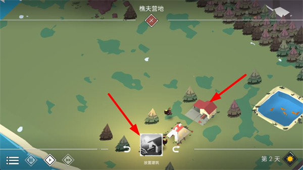 4、選擇樵夫營地后,點擊放置建筑按鈕,將其布置在合適區域,完成該設施的搭建,為營地提供木材相關的資源支持。