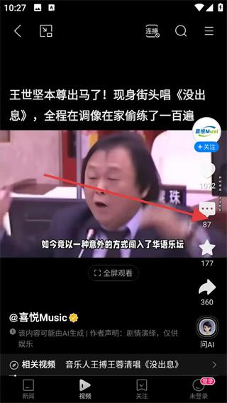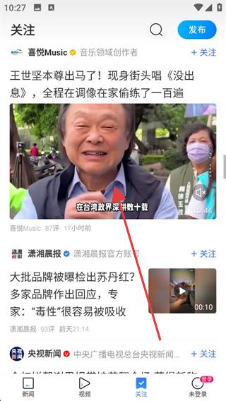 2、在關注頁面瀏覽熱門內容,找到王世堅相關視頻,點擊進入視頻播放頁面。