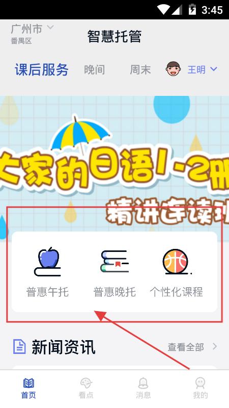 1、普惠午托,普惠晚托,個性化課程等服務入口,家長可按需選擇,快速為孩子報名對應課后托管,滿足多樣托管需求。