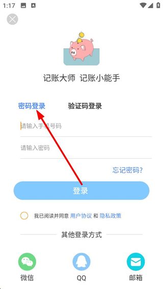 3、點擊登錄后進入登錄界面,可選擇密碼登錄方式,輸入手機號碼與對應密碼,勾選協議后點擊登錄即可完成賬號驗證。