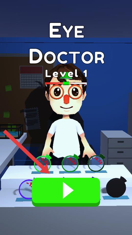 1、進入游戲,顯示Eye Doctor Level1,點擊綠色開始按鈕,開啟眼科醫生模擬,為患者檢查眼睛。