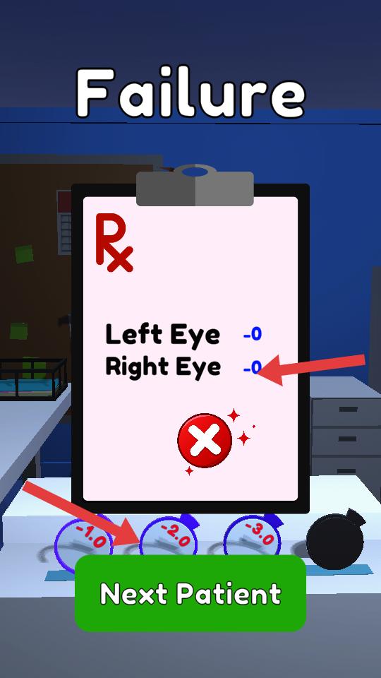 4、若配鏡失敗,界面顯示Failure及患者眼部數據,點擊Next Patient,可換一位患者繼續進行視力檢查配鏡。