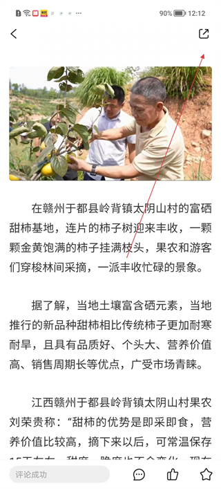 3、在文章詳情頁閱讀內容后點擊右上角分享按鈕,準備將文章分享至其他渠道。